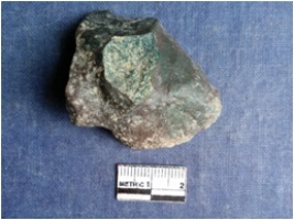 | Description / विवरण | The chert flake is a primary flake with clear cortex and sharp edges. Negative bulb is seen. |