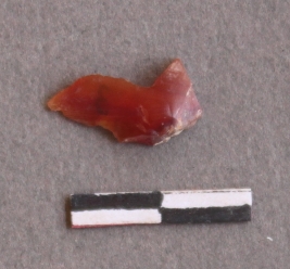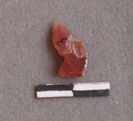 | Description / विवरण | This is a fragment of carnelian stone, flaked with cut edges with ripple marks on the surface. It has sharp edges and pointed ends. |