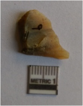 | Description / विवरण | The flake is of crypto - crystalline material with clear flaking and surgical fracture. The piece has ridges due to flake detachment. Flat flake, rectangular in section. |