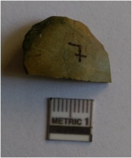 | Description / विवरण | The flake is of crypto - crystalline material with clear flaking and surgical fracture. The piece has ridges due to flake detachment. Flat flake, rectangular in section. |
