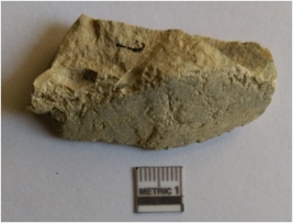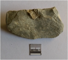 | Description / विवरण | The white shale flake has a median ridge owing to flaking. The flake has a positive bulb of percussion. |