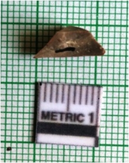 | Description / विवरण | The flake has pointed ends and sharp edges. A backed platform is present as a result of flaking. The piece has characteristic bulb of percussion. |