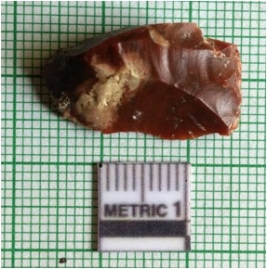 | Description / विवरण | The flake has pointed ends and sharp edges. A backed platform is present as a result of flaking. The piece has characteristic bulb of percussion. |