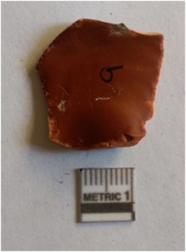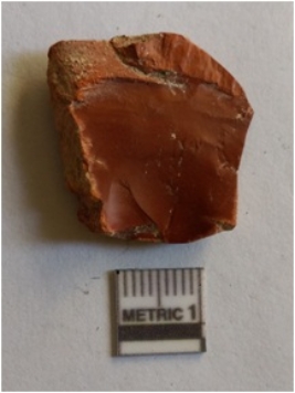 | Description / विवरण | The dark jasper flake has flaked ridge and negative bulb of percussion. |