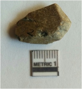 | Description / विवरण | The chert flake has a positive bulb of percussion and rounded edges, probably as a result of deposition. The flake has cut sides. |