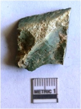 | Description / विवरण | The chert flake has a prominent bulb of percussion and sharp flaked edges. The piece has smooth flaked surface and clear flake scars. The piece is a part of secondary flaking, forming a part of lithic waste as a part of knapping. |