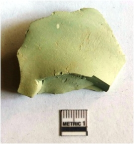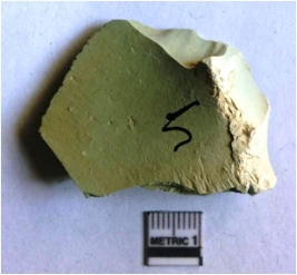| Description / विवरण | The chert flake has a prominent bulb of percussion and sharp flaked edges. The piece has smooth flaked surface and clear flake scars. The piece is a part of secondary flaking, forming a part of lithic waste as a part of knapping. |