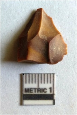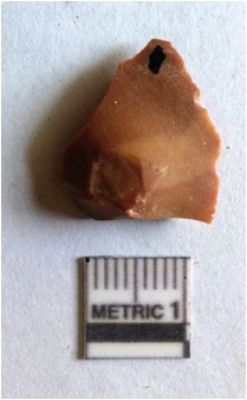 | Description / विवरण | The crypto - crystalline chert flake has the characteristic bulb of percussion, flake scars due to transverse flaking and flaking platform. Hower the flake is a part of lithic knapping, and secondary in its mode of production. |