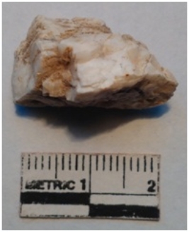 | Description / विवरण | It is a milky quartz, irregular flaking ridges on the surface cortex on one portion of the flake. |