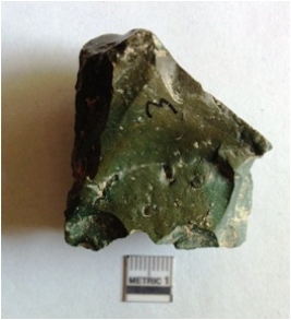 | Description / विवरण | The crypto - crystalline chert flake has the characteristic bulb of percussion, flake scars due to transverse flaking and flaking platform. Hower the flake is a part of lithic knapping, and secondary in its mode of production. |