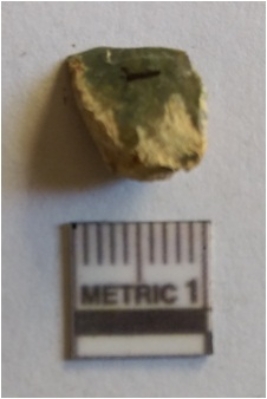 | Description / विवरण | The chert flake has clear flaked edges and flake scars on the surface. The piece is crypto - crystalline, with pointed ends and sharp but slightly rolled edges. |