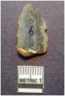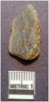| Description / विवरण | It is a banded chalcedony, with cortex on one side and flake scars on other side of the surface. |