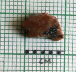 | Description / विवरण | The jasper flake has a shallow bulb of percussion and edges due to flaking. The deep colored flake has a median ridge due to flaking. The flake has angular edges and sharp pointed ends. |