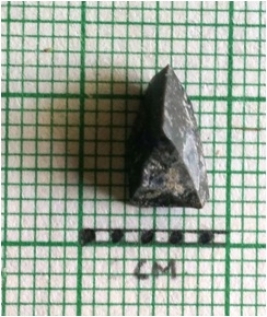| Description / विवरण | The jasper flake has a shallow bulb of percussion and edges due to flaking. The deep colored flake has a median ridge due to flaking. The flake has angular edges and sharp pointed ends. |