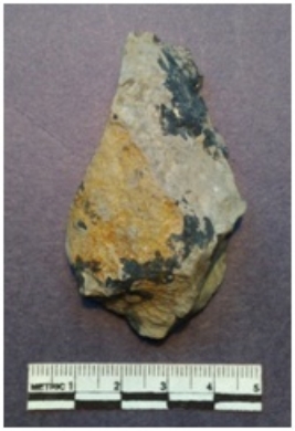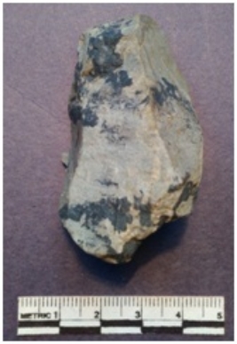 | Description / विवरण | It is a shist core, grayish black in color. Flake scars on the surface, sharp edges and striking platform on the proximal end. |