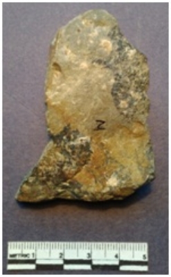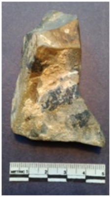 | Description / विवरण | It is a shist core, grayish black in color. Flake scars on the surface, sharp edges and striking platform on the proximal end. |
