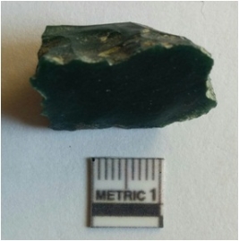 | Description / विवरण | The jasper piece numerous flake scars and a prominent negative bulb of percussion. The flaking has resulted in its sharp angular edges and points. |
