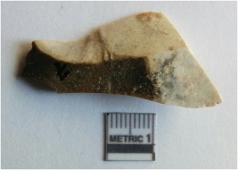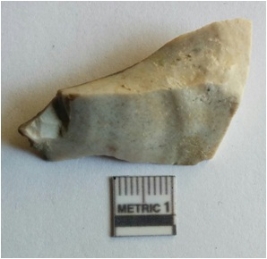 | Description / विवरण | Elongated chert flake with sharp edges and a pointed end. |