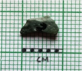 | Description / विवरण | The chert piece has flake scars and sharp edges. The bulb is shallow, and the piece is roughly ground. |