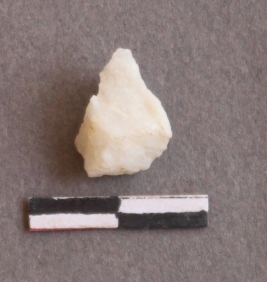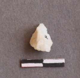 | Description / विवरण | White quartz fragment broken with part of bulb of percussion seen. |