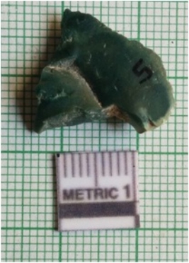 | Description / विवरण | The flake has a sharp edge due to flaking. The piece has flaked. Ridge and negative flake scars on the surface. |