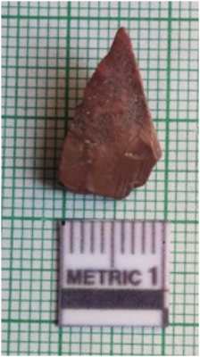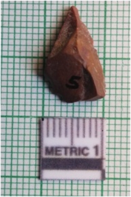 | Description / विवरण | The jasper piece has sharp pointed end as a result of flaking and cut edges. |