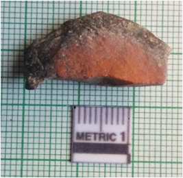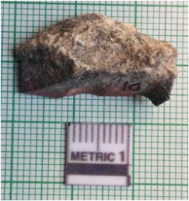 | Description / विवरण | The chert piece has flaked sides and sharp cutting edges due unintentional flaking. The piece has a rough surface on the non flaked end. |