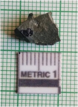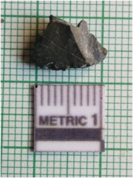 | Description / विवरण | The green jasper lithic fragment has sharp flaked edges and negative flake scars on the surface. |