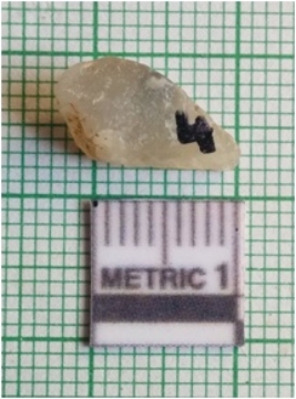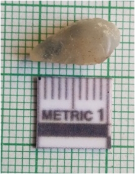 | Description / विवरण | Quartz piece has tapering sides and a pointed end as a result of flake detachment. |