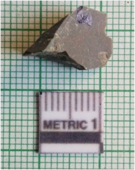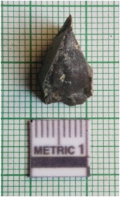 | Description / विवरण | The schist piece is pale grey in color, with sharp pointed ends and flaked edges. The piece has flake scars on the surface owing to knapping. |