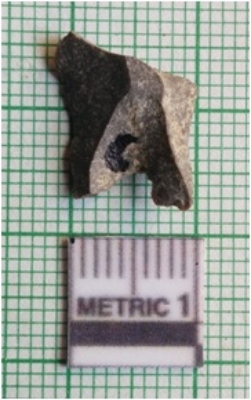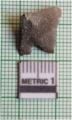 | Description / विवरण | The schist piece is pale grey in color, with sharp pointed ends and flaked edges. The piece has flake scars on the surface owing to knapping. |