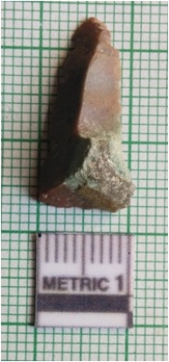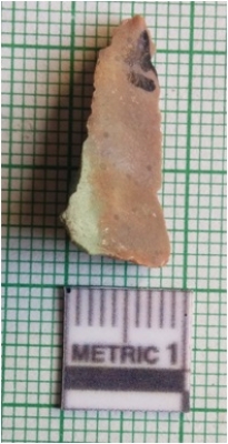 | Description / विवरण | Fractured piece with sharp edges and pointed ends. The piece has retouched rectangular section. |