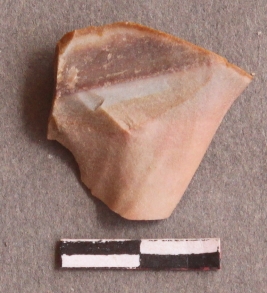 | Description / विवरण | A fine grain chert fragment ripples and flaked of surfaces, flat with depressions. Cortex is seen in one side. |