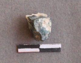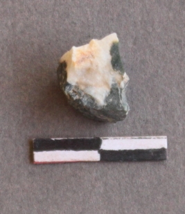 | Description / विवरण | It is a Jasper fragment. Flake scars on the surface. Striking platform on the proximal end. |