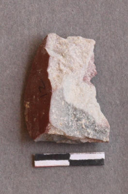 | Description / विवरण | It is a Jasper fragment. Flake scars on the surface. It has sharp edges and pointed ends. |