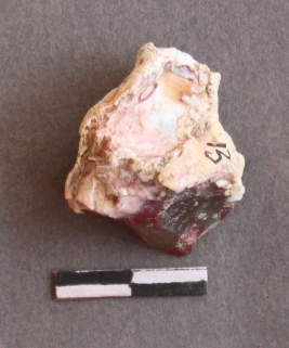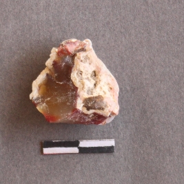 | Description / विवरण | It is a Jasper nodule. It is partly covered with cortex. Chopped from one end. The nodule is patinated with calcium impurities. |