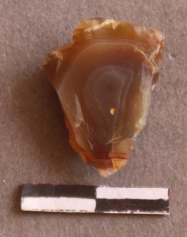 | Description / विवरण | It is a chalcedony nodule, with a bulb of percussion on the ventral side. Cortex on one end. |