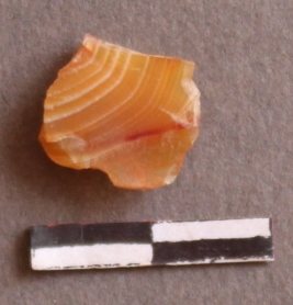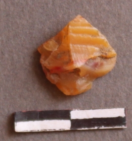 | Description / विवरण | It is a chalcedony flake, with a bulb of percussion on the ventral side. Cortex on one end. |