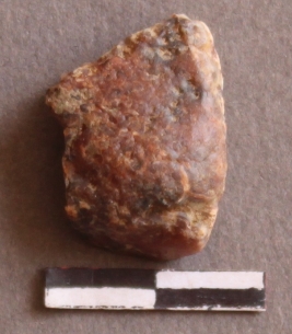 | Description / विवरण | It is a jasper fragment. Flake ridges on the surface. Cortex on the surface. Chipped from one side. |