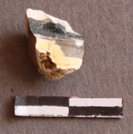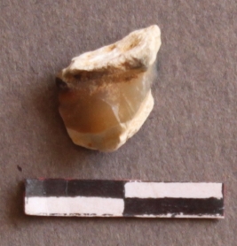 | Description / विवरण | It is a quartz flake. It is partly covered with cortex on the surface which is patinated with calcium impurities. |