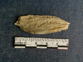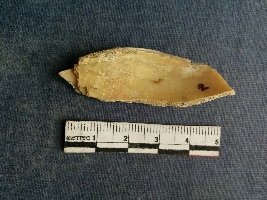 | Description / विवरण | Shell piece is pale white in color with ropy structure on it woing to natural formation. The piece has a pointed end and a flat cut opposite end, the shaff has a slight curvature. |