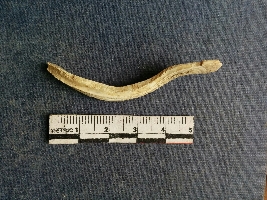 | Description / विवरण | Shell piece is pale white in color with ropy structure on it woing to natural formation. The piece has a pointed end and a flat cut opposite end, the shaff has a slight curvature. |