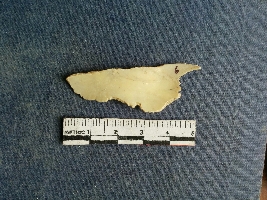 | Description / विवरण | Shell piece is pale white in color with ropy structure on it woing to natural formation. The piece has a pointed end and a flat cut opposite end, the shaff has a slight curvature. |