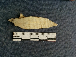 | Description / विवरण | Shell piece is pale white in color with ropy structure on it woing to natural formation. The piece has a pointed end and a flat cut opposite end, the shaff has a slight curvature. |