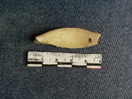 | Description / विवरण | Shell piece is pale white in color with ropy structure on it woing to natural formation. The piece has a pointed end and a flat cut opposite end, the shaff has a slight curvature. |
