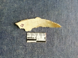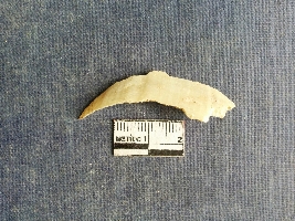 | Description / विवरण | Shell piece is pale white in color with ropy structure on it woing to natural formation. The piece has a pointed end and a flat cut opposite end, the shaff has a slight curvature. |