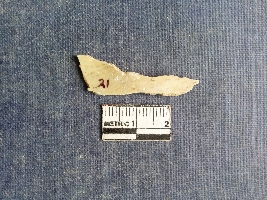 | Description / विवरण | Shell piece is pale white in color with ropy structure on it woing to natural formation. The piece has a pointed end and a flat cut opposite end, the shaff has a slight curvature. |