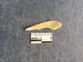 | Description / विवरण | Shell piece is pale white in color with ropy structure on it woing to natural formation. The piece has a pointed end and a flat cut opposite end, the shaff has a slight curvature. |