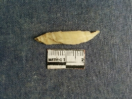 | Description / विवरण | Shell piece is pale white in color with ropy structure on it woing to natural formation. The piece has a pointed end and a flat cut opposite end, the shaff has a slight curvature. |