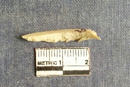 | Description / विवरण | Shell piece is pale white in color with ropy structure on it woing to natural formation. The piece has a pointed end and a flat cut opposite end, the shaff has a slight curvature. |